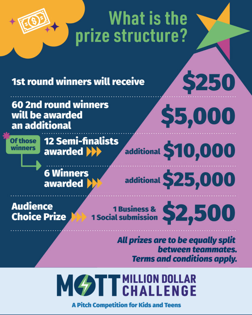 The Mott Million Dollar Challenge: A Pitch Competition for Kids & Teens is a national initiative that invites K-12 students to pitch their best ideas in short video submissions.